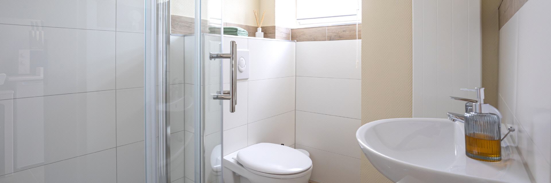Die 2 Betten im kombinierten Wohn-/Schlafbereich sind für Ihren erholsamen Schlaf mit neuen Matratzen ausgestattet, die Bettwäsche ist selbstverständlich inklusive. Das Bad ist modern und hell eingerichtet und bietet ausreichend Platz für Ihre täglichen Hygieneartikel. Selbstverständlich stellen wir Ihnen einen Fön sowie Hand- und Duschtücher zur Verfügung. Der gemütliche Essbereich mit kleiner Einbauküche ist ebenfalls gut ausgestattet.