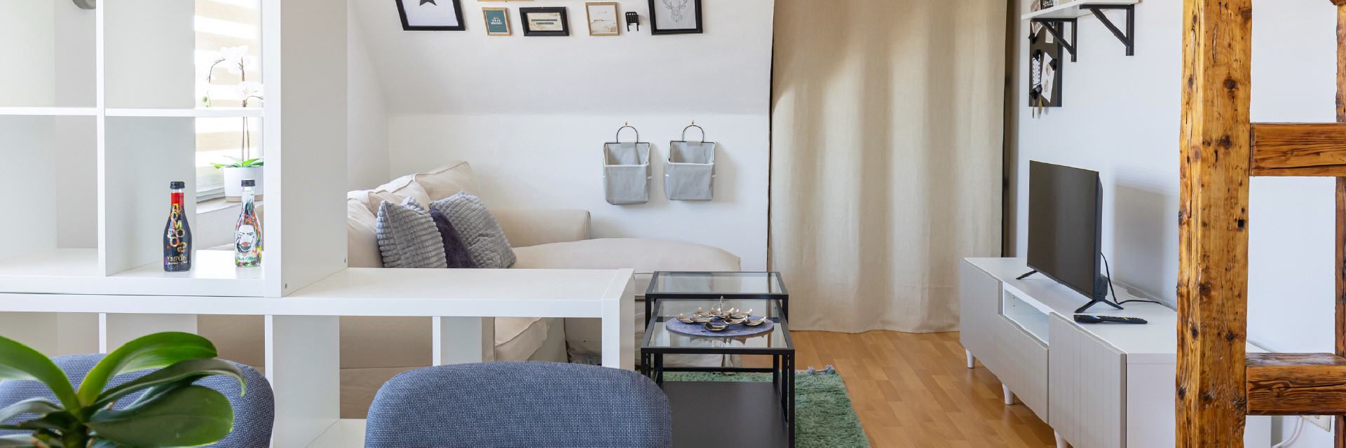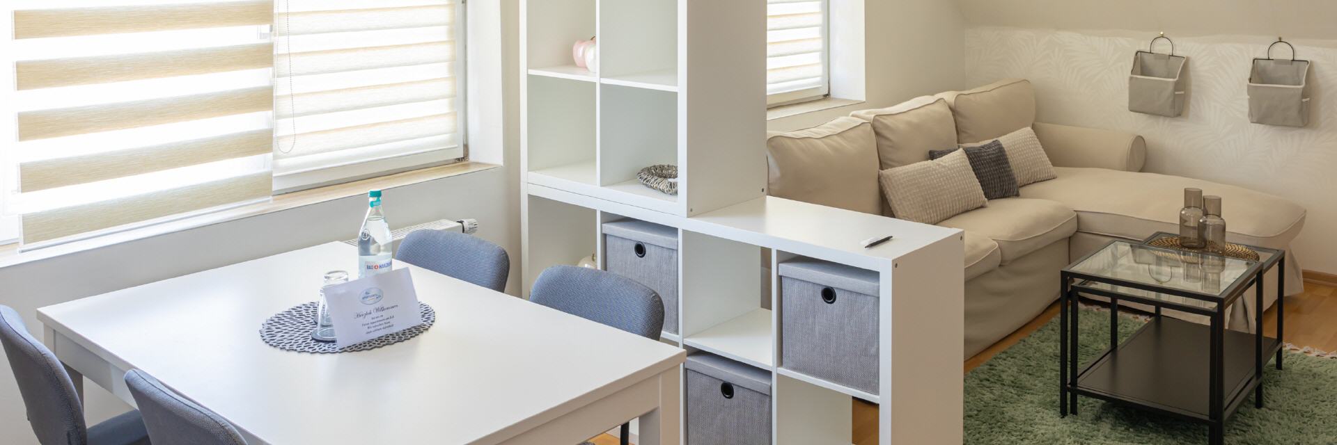 Unser Appartement II ist ca. 48 qm groß, liegt im 2. Obergeschoss unseres Hauses, bietet Platz für bis zu drei Personen und verfügt über kostenloses W-LAN und Flachbild-TV.